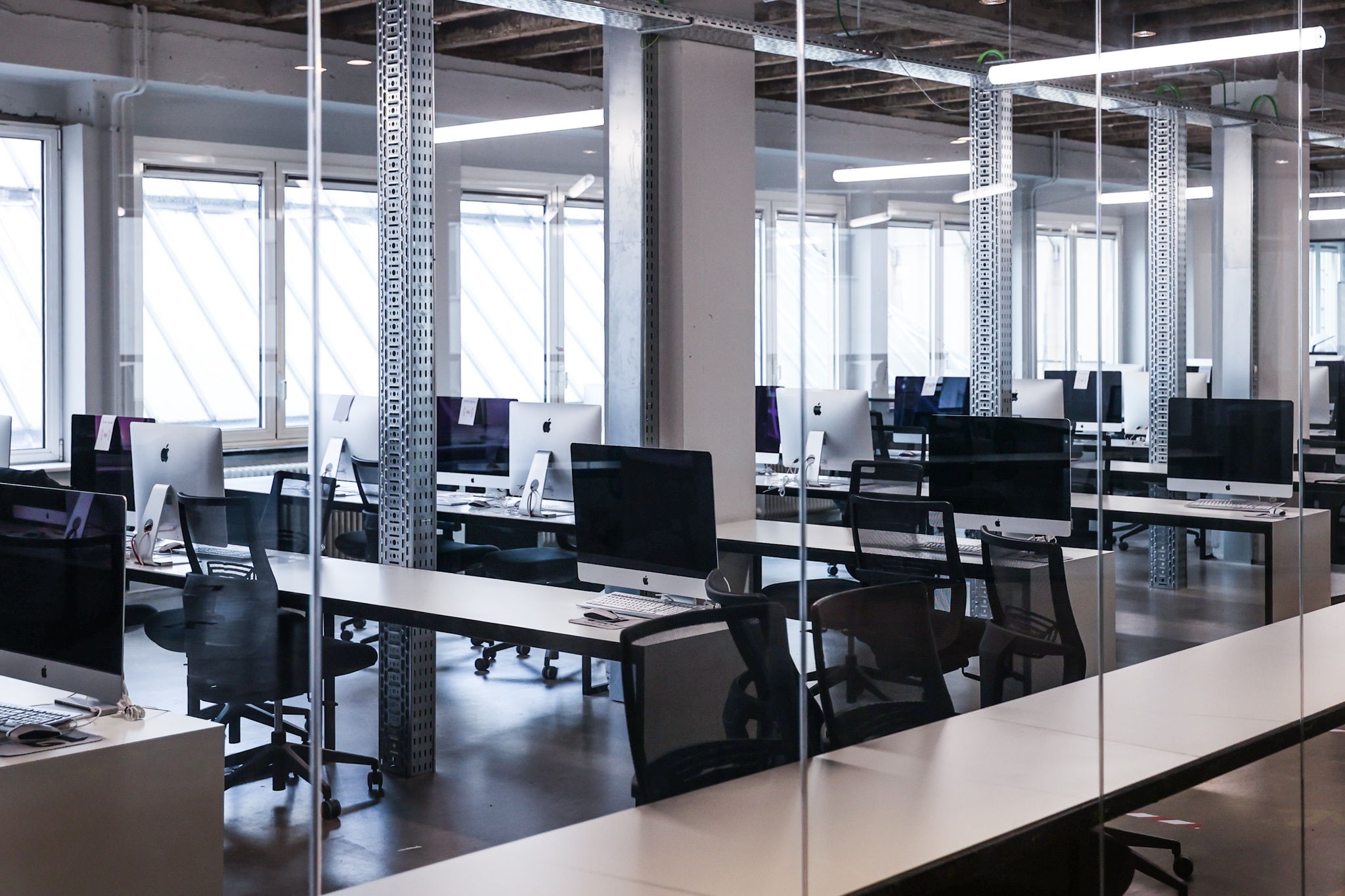 The new spaces of 19, a coding school located in the heart of Brussels and affiliated with École 42, founded by Xavier Niel in Paris, were designed to reflect the school’s bold visual and graphic identity.