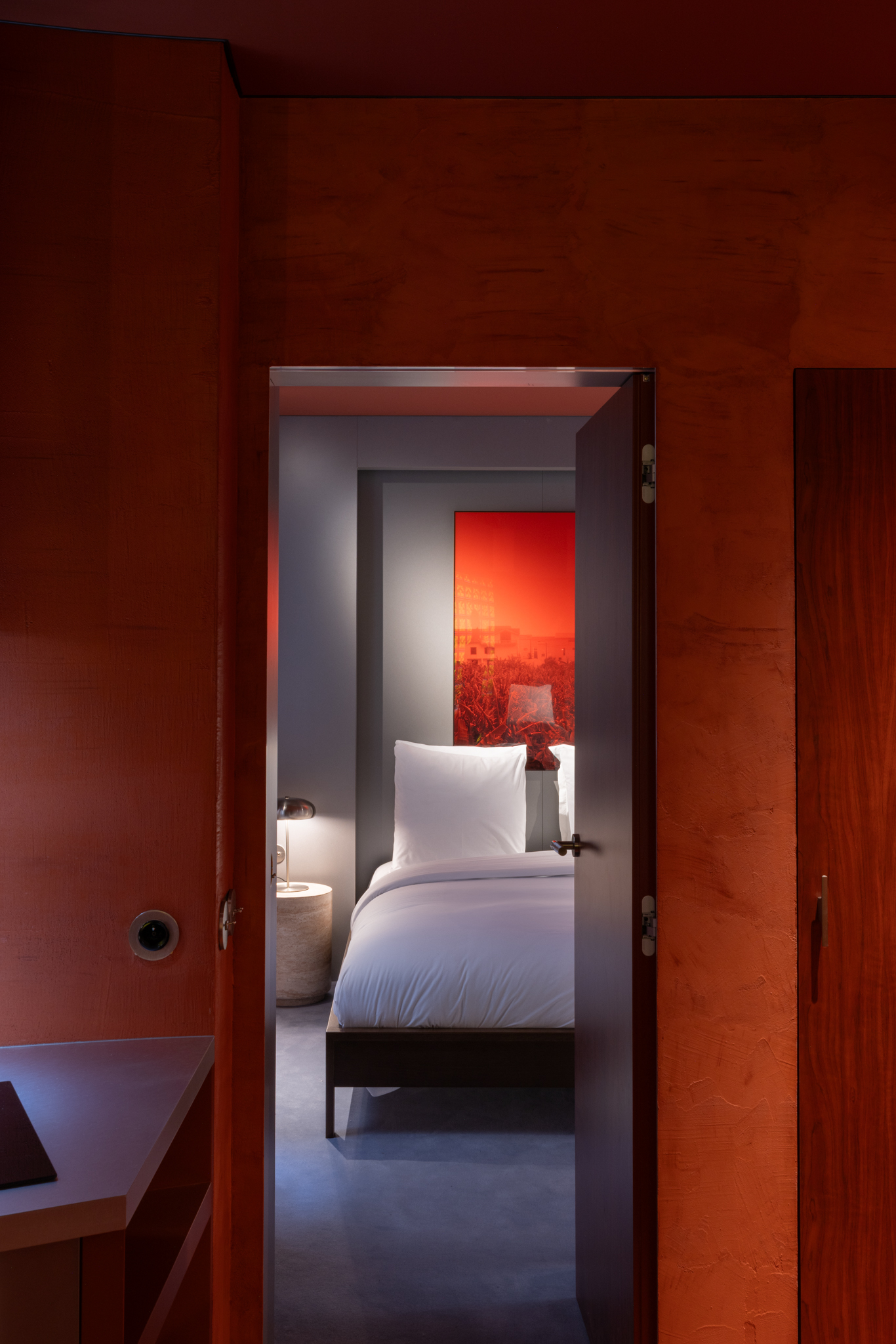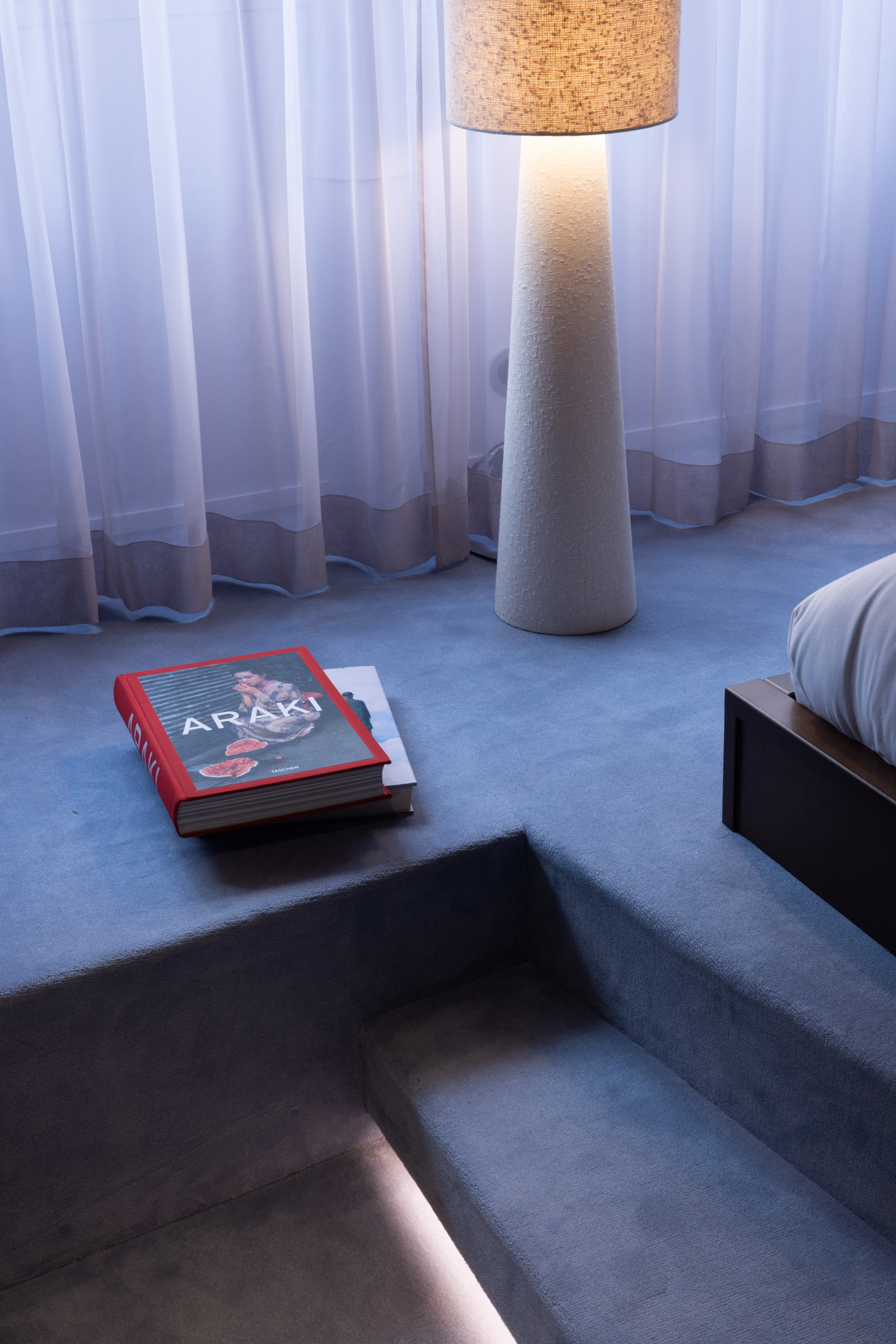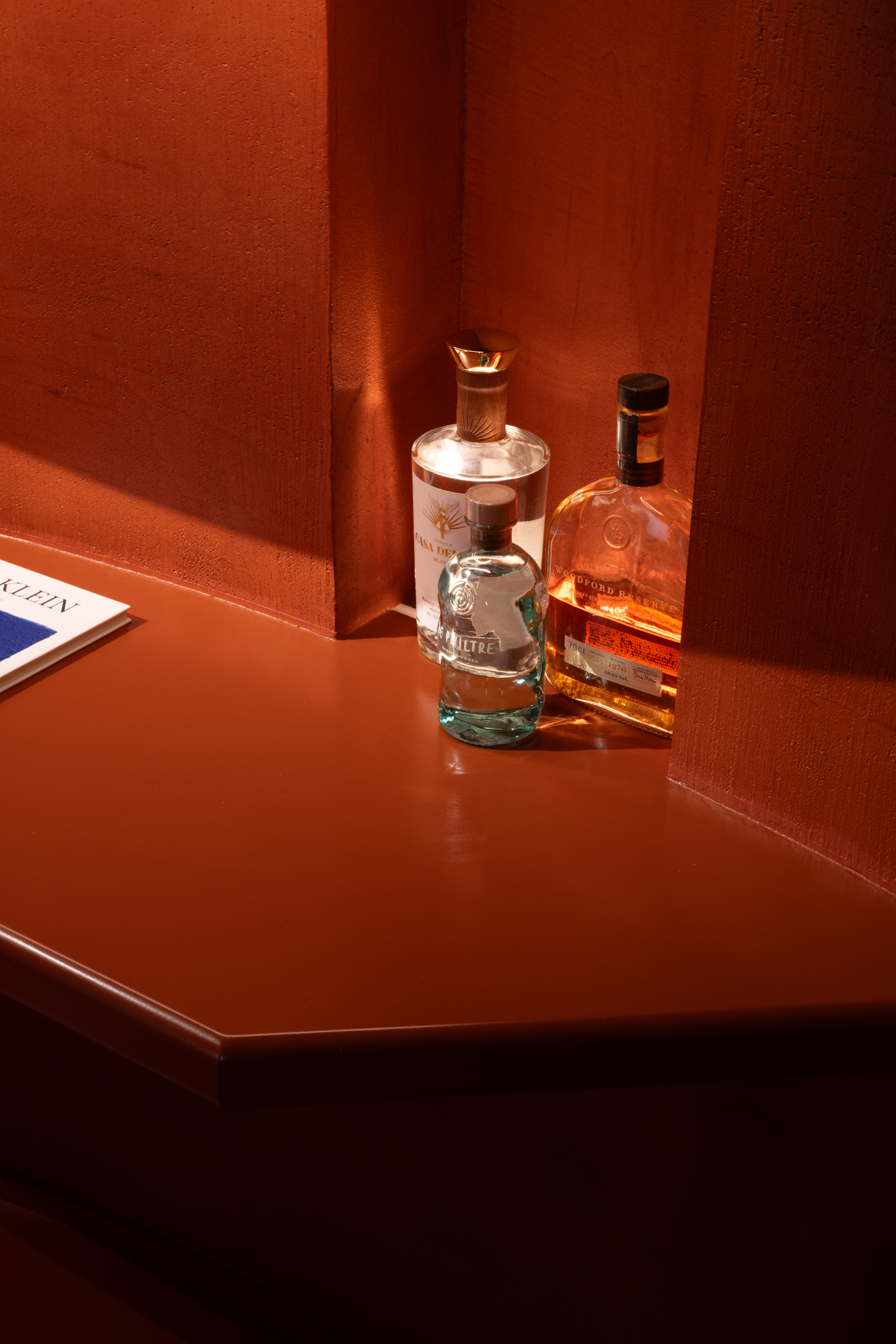 Balancing warmth and coolness, elegance and relaxation, the decor effortlessly merges vintage finds with contemporary design pieces. The interior design aesthetic draws inspiration from Maxime’s personal travel photography, the cinematic lighting and storytelling of films like Blade Runner 2049 by Denis Villeneuve and Self 05 by Wong Shia, and the evocative paintings of Edward Hopper.