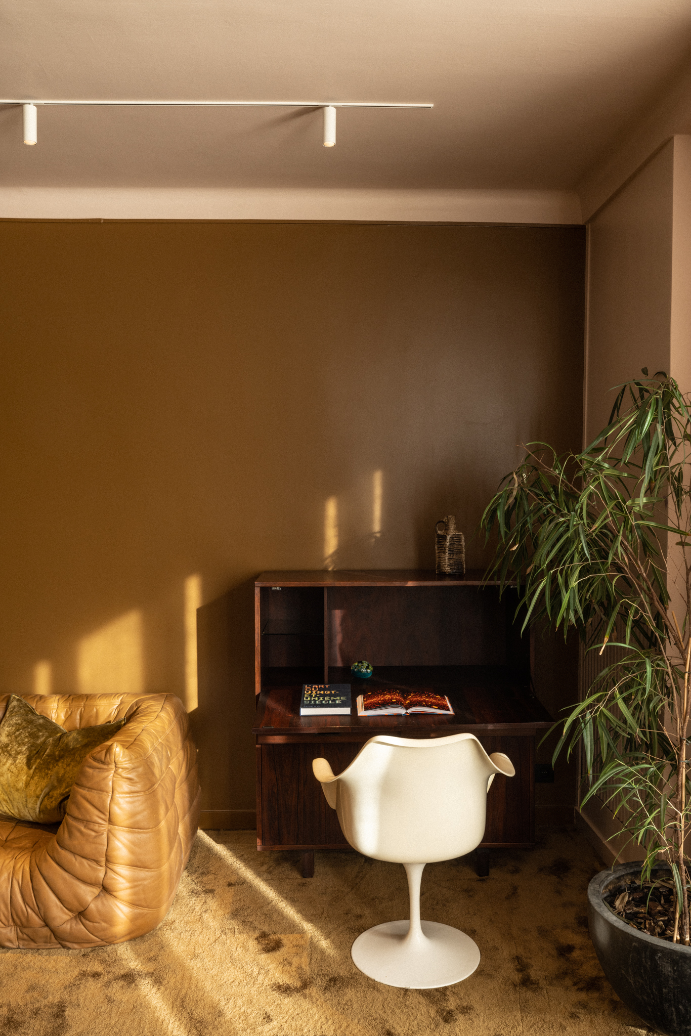 À deux pas de la très prisée Place Brugmann, cet appartement deux chambres dévoile une atmosphère hors du temps. Repensé avec soin, il met en valeur ses éléments d’époque tout en sublimant l’esthétique intemporelle des années 70.
