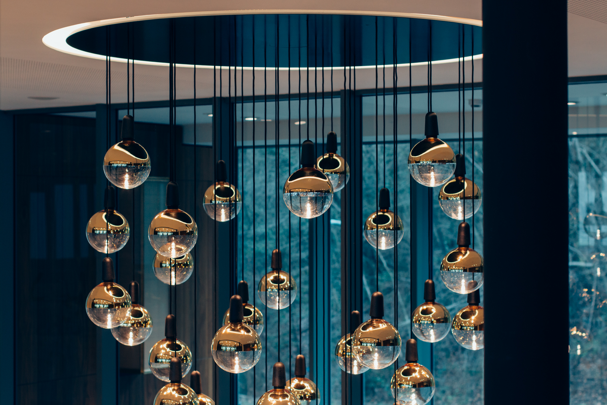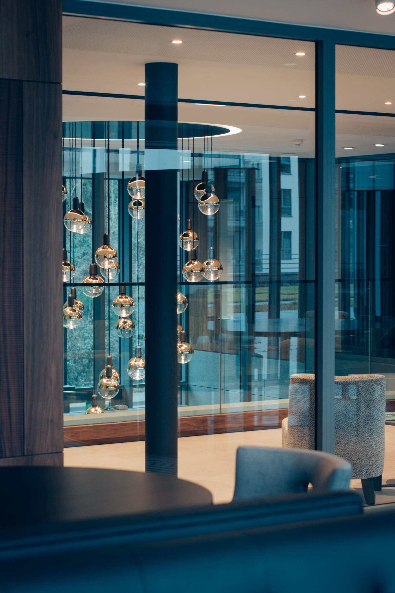 L’identité visuelle du projet s’exprime à travers des tapis imprimés sur mesure, conçus spécifiquement pour ce lieu. L’éclairage du restaurant, modulable grâce à un système magnétique, permet d’adapter facilement l’ambiance. Les suspensions en verre, ornées d’un voile de lin, diffusent une lumière douce, sublimée par des touches de laiton qui réchauffent l’espace. Enfin, les banquettes sur mesure, aux lignes rétro et décontractées, viennent parfaire cette atmosphère sophistiquée et accueillante.